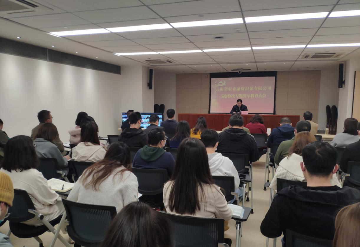2月20日,云南省農(nóng)業(yè)融資擔(dān)保有限公司召開巡察整改專題警示教育大會。公司黨總支部書記、郭影作巡察整改專題警示教育宣講,組織員工簽訂《農(nóng)擔(dān)從業(yè)禁止事項承諾書》,黨總支部紀檢委員李建華作提升員工廉潔和服務(wù)意識培訓(xùn)。會議由郭影同志主持,省公司全體員工參加了會議,州市辦事處員工通過視頻會議方式參會。